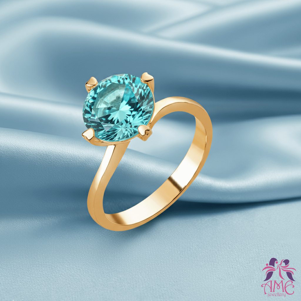 Nhẫn nữ Vàng 14K Đá quý tự nhiên Zircon xanh lam của AME Jewellery. Thanh lịch và tinh tế, chiếc nhẫn nổi bật với viên Blue Zircon rực rỡ, được tôn vinh trong thiết kế 'Solitaire Twist' duyên dáng. Chế tác từ Vàng 14K, đường xoắn mềm mại của thân nhẫn càng làm nổi bật vẻ lấp lánh của viên đá quý.
